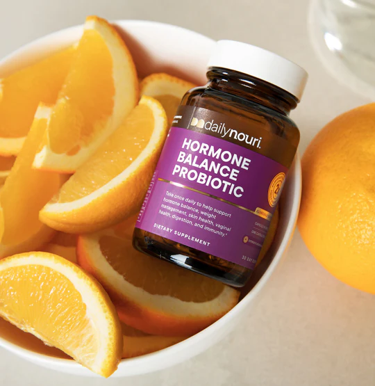 This probiotic supports hormone balance through the gut-hormone connection. It contains specific strains shown to modulate estrogen levels by supporting the estrobolome—a collection of gut bacteria responsible for metabolizing estrogen. A healthy gut microbiome helps promote the proper excretion of used hormones, which can lead to more balanced levels.